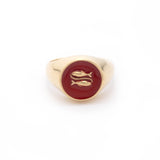 Please refer to our "Custom Guide" on the lower left side of this page. This ring can be made with any of the enamel colors and you see referenced.